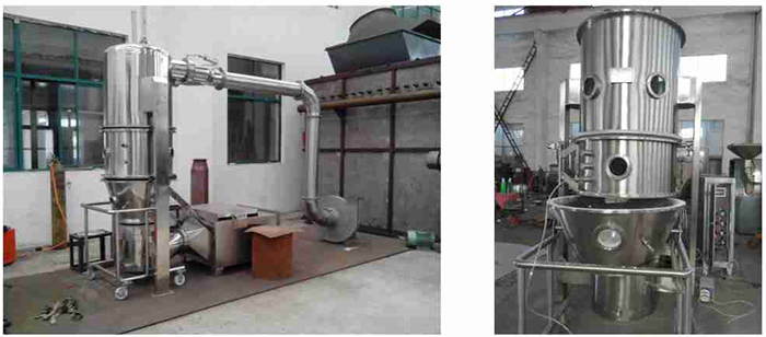 粉狀物料投入料斗(密閉容器)內(nèi),由于熱氣流的作用,使粉末懸浮呈流化狀循環(huán)流動,達到均勻混合,同時噴入霧狀粘結(jié)劑潤濕容器內(nèi)的粉末,使粉末凝聚成疏松的小顆粒,成粒的同時,由于熱氣流對其作高效干燥,水分不斷蒸發(fā),粉末不斷凝固,此過程重復(fù)進行,形成理想的、均勻的多微孔球狀顆粒,在容器中一次完成混合、造粒、干燥三個工序,即簡稱"一步制粒"。