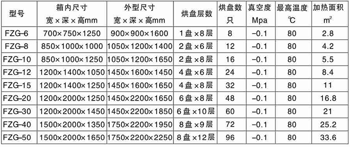應(yīng)用范圍: 適用于在高溫下易分解,聚合和熱敏性物料的低溫干燥,被廣泛應(yīng)用在制藥、化工、食品、電子等行業(yè)。 結(jié)構(gòu)特點: 1、 本設(shè)備為平板加熱方型真空干燥箱; 2、 加熱平板的導(dǎo)熱介質(zhì)為熱水、導(dǎo)熱油或蒸汽。 技術(shù)參數(shù):